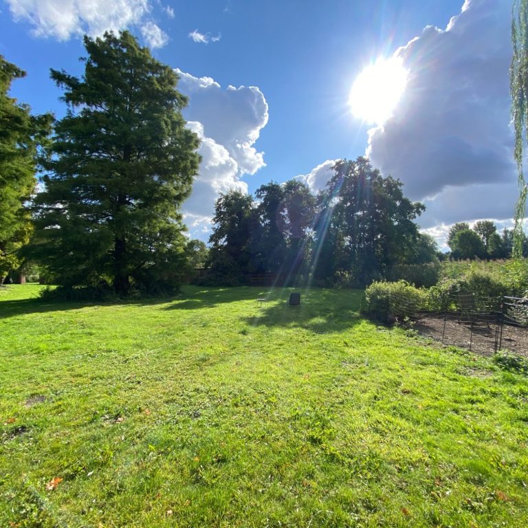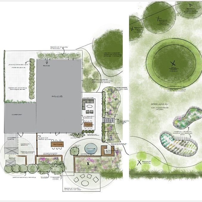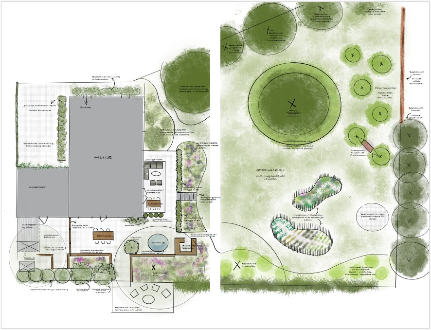 De tuinmanswoning op Landgoed Berkenrode is gelegen op een prachtig perceel dat naast een aantal imponerende bomen (Taxodium, Metasequoia, Juglans) voornamelijk uit grasland bestaat. Rond de woning zijn grote terrassen aangelegd die een ietwat versteende indruk maken en daarmee de landelijke tuin letterlijk op afstand houden. De nieuwe bewoners, zelf enthousiaste tuiniers, zochten naar meer groen en kleur rond het huis, maar met behoud van de bestaande terrassen. Daarnaast was er de wens om in het grasland naast een speelveld ook een buitenkeuken, een moestuin, een boomgaard en wat plukfruit te ontwikkelen.