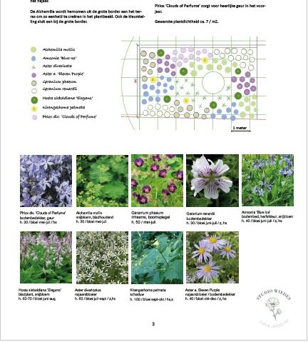Ik luister graag naar je wensen qua kleur en favoriete bloemen, en maak daarna een gedetailleerd overzicht op schaal, inclusief een illustratief overzicht van de voorgestelde soorten en de benodigde aantallen in een handige bestellijst. Hiermee kan je vervolgens naar een kweker of prijs vragen bij een hovenier. Als de planten geleverd zijn, help ik je graag met uitzetten van de planten op locatie. Hiervoor reken ik een uurtarief. Daarna kan je ze zelf in de grond zetten of een aannemer inhuren voor het plantwerk.